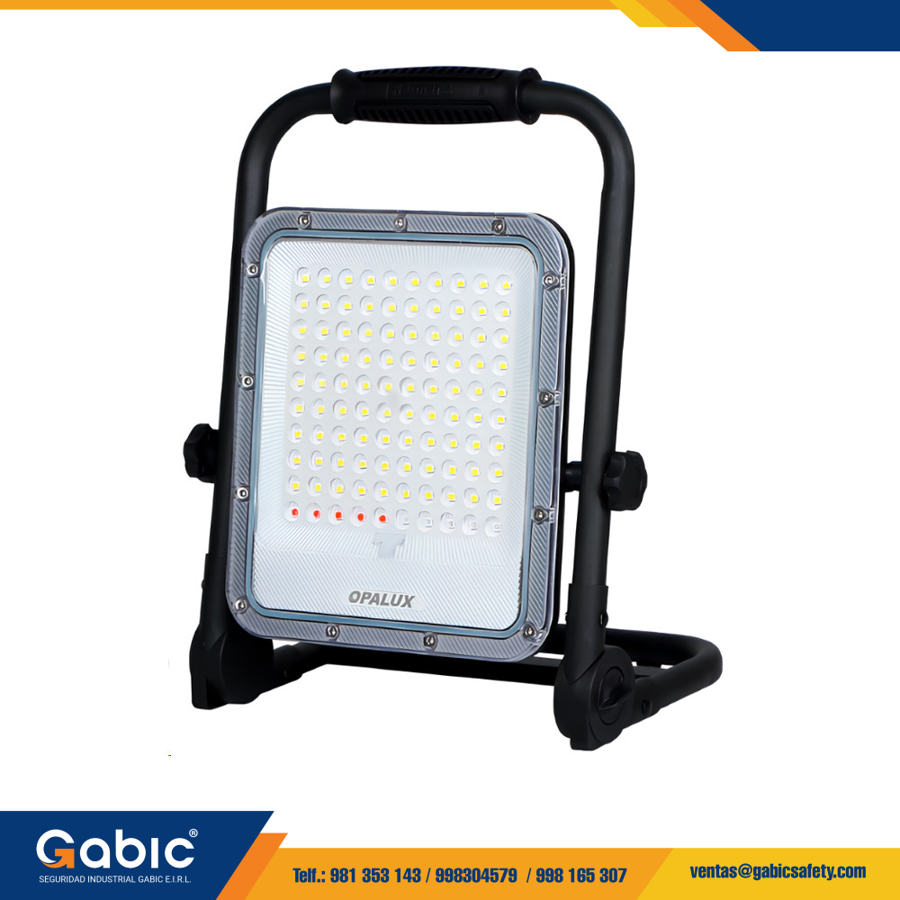 Este reflector portátil LED Opalux de 50W ofrece una solución de iluminación potente y versátil para diversas aplicaciones en exteriores. A continuación, se detallan sus características, beneficios y especificaciones técnicas.