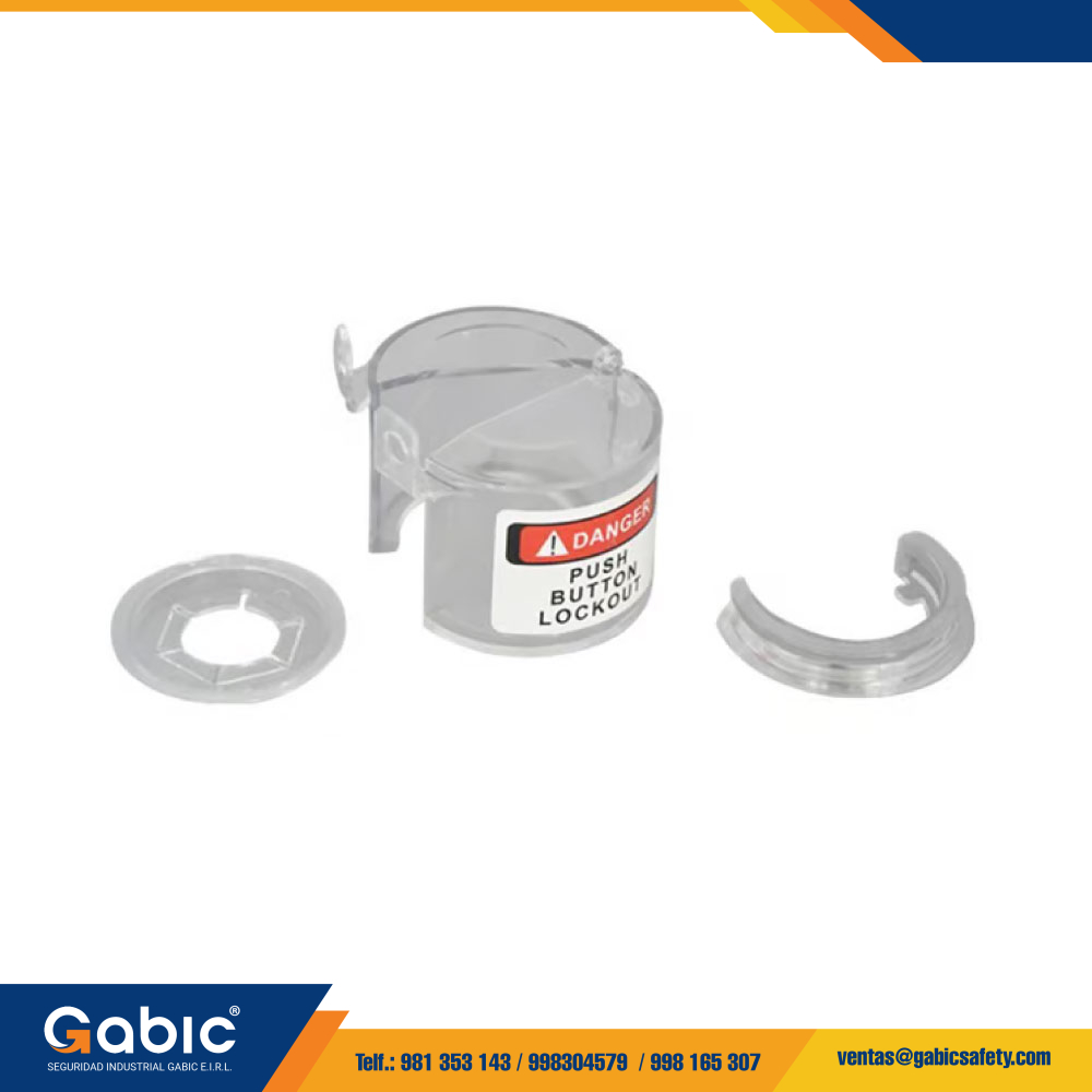 Set de bloqueo diseñado para aplicar procedimientos de lockout/tagout en pulsadores de parada de emergencia o selectores en tableros eléctricos. Fabricado en policarbonato transparente resistente, permite el bloqueo físico y señalización clara de estado de riesgo, en conformidad con normas como OSHA 29 CFR 1910.147