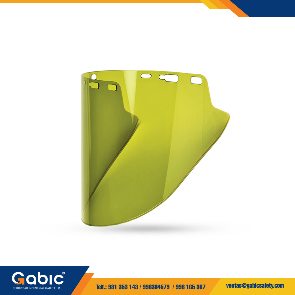 Este visor cuenta con excelente transmisión de luz visible (50%) y un filtro que bloquea el 99,9% de radiación UV en el rango 180-380 nm. Resiste altas temperaturas y la liberación de energía térmica bajo pruebas ASTM 2178-08. Compatible con el arnés Elvex HG-25 y soportes de visor “VB” con adaptador “SA”, puede montarse en la mayoría de cascos de seguridad ranurados.